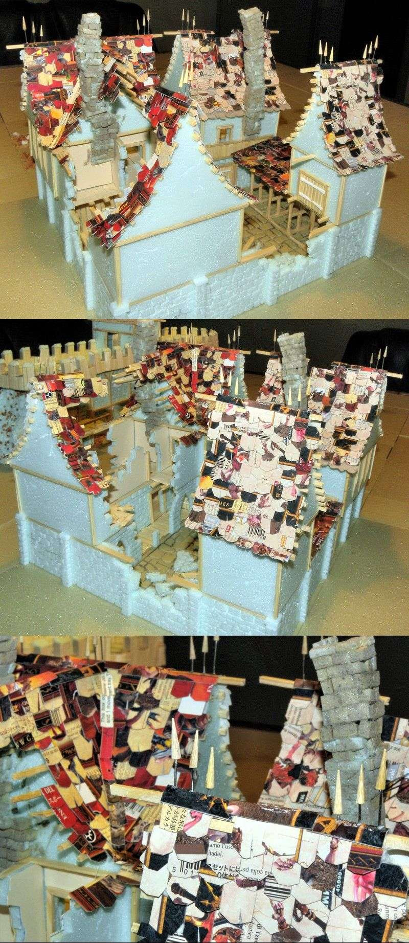"Ozdobiłem" dach "grotami" z patyczków na szaszłyki osadzonymi na drucie ze spinaczy: