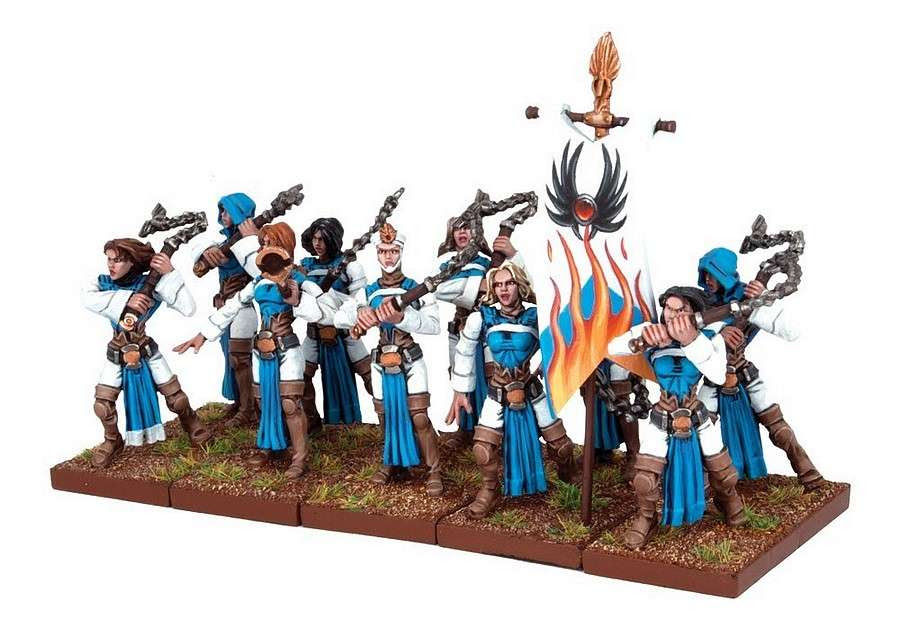 Jako podstawę do złożenia modeli bohaterek zamierzam wykorzystać korpusy oraz nogi i ramiona z zestawu Basilean Paladins. Choć modele paladynów reprezentują mężczyzn, to wykorzystanie głów z zestawu Basilean Sisterhood powinno sprawić, że heroiny faktycznie będą wyglądać jak kobiety zakute w zbroje płytowe. Przy okazji, jeśli prawdą jest, że modele Mantica są bardziej proporcjonalne i drobniejsze od figurek GW, to całość powinna prezentować się znośnie.Prezbiter Sigmara. Osobiście pozostanę przy modelach z GW i wybiorę któregoś z oryginalnych kapłanów Sigmara. Jednak w wersji budżetowej model można złożyć z nóg, korpusu i ramion paladyna oraz głowy flagelanta.