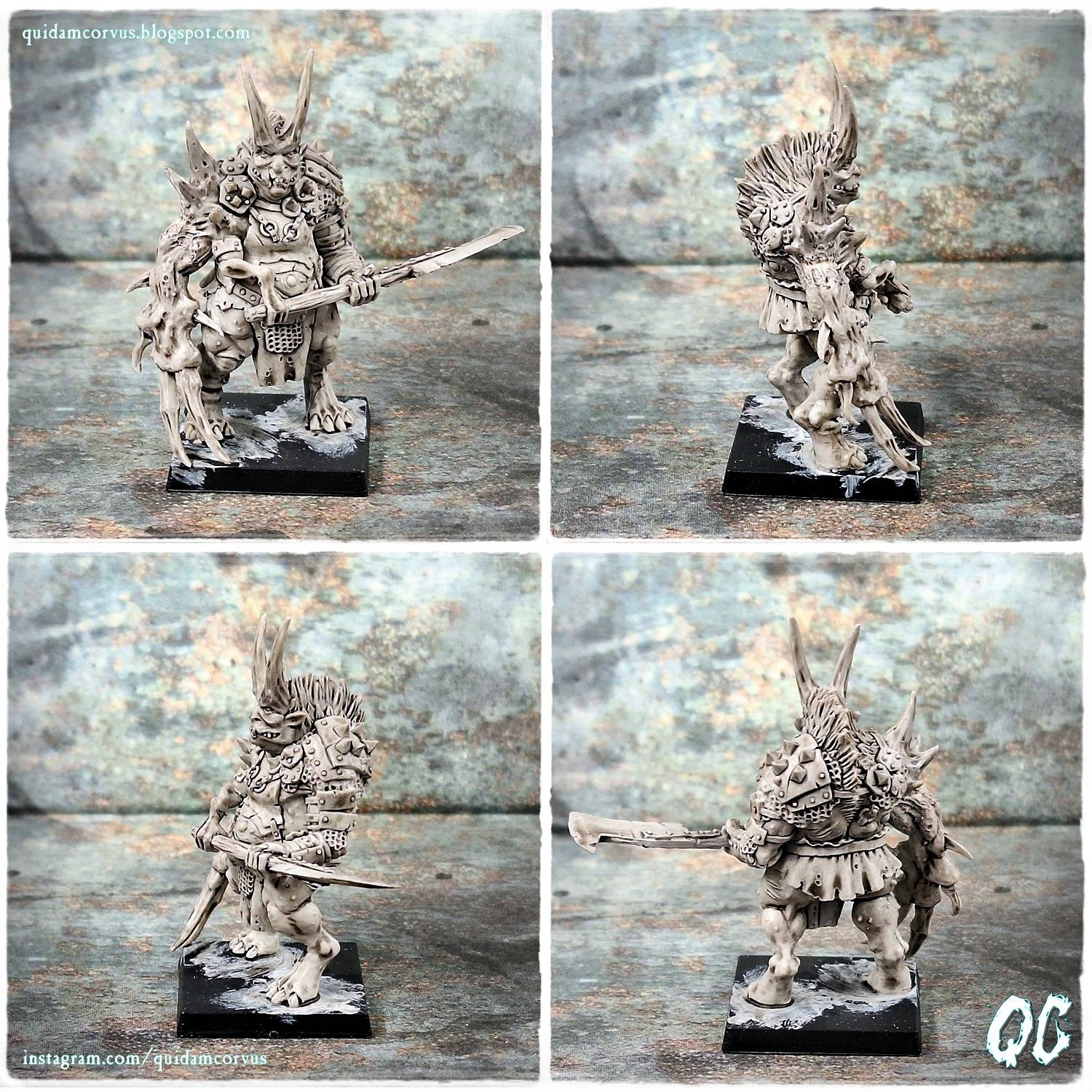 | Dziś mam dla Was recenzję modelu z serii Bleating Smashers od Rotten Factory, która dostępna była w ramach kampanii Rotten Reborn na Kickstarterze. Model, został umieszczony wraz z dwoma innymi modelami z serii w woreczku strunowym, zamkniętym firmową ulotka. Wewnątrz znalazł się także mniejszy woreczek strunowy zawierający najmniejsze elementy modeli, które przed malowaniem trzeba samodzielnie przykleić do większych korpusów. Odlane z żywicy wieloczęściowe figurki przedstawiają mniej lub bardziej zmutowane istoty, niewątpliwie cieszące się łaską Mrocznych Potęg, a w szczególności Ojczulka Nurgla. Modele utrzymane są w charakterystycznym dla Rotten Factory stylu, który z powodzeniem pasuje do figurek przedstawiających postaci oddane bogu zarazy. Modele są bogate w indywidulane detale, które sprawiają że każda figurka zdaje się mieć swój własny charakter. Jakość odlewu jest bardzo dobra, nie zauważyłem większych nadlewek czy śladów podziału formy lub błon pozostałych po procesie odlewania, a części są dość dobrze spasowane do siebie. Polecam! Jeśli Rotten Factory wznowi kiedyś działalność, to więcej informacji znajdziecie na stronie sklepu. | Today, as part of our Friday review series, I bring you a miniatures from the Bleating Smashers line by Rotten Factory, which was originally available through the Rotten Reborn Kickstarter campaign. The miniature, which came as part of a larger shipment, was packed together with two other figures from the same line in a ziplock bag sealed with the company’s branded leaflet. Inside, there was also a smaller ziplock containing the tiniest components—bits you’ll need to glue onto the main bodies before painting. These multipart resin miniatures depict more or less mutated abominations clearly basking in the favor of the Dark Powers—Father Nurgle in particular. The miniatures are sculpted in Rotten Factory’s distinct style, which fits seamlessly with figures devoted to the god of plague. Each miniature is full of unique details that give it a strong individual character and personality. The casting quality is excellent—no major mold lines, no flash, no odd miscasts, and the parts fit together rather nicely without the need for excessive trimming or cursing. Highly recommended! And if Rotten Factory ever resumes production, you’ll find more information on their store page. |